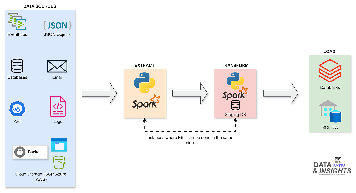 → Extract: Pulling data from various sources such as APIs, Databases and even cloud storage.