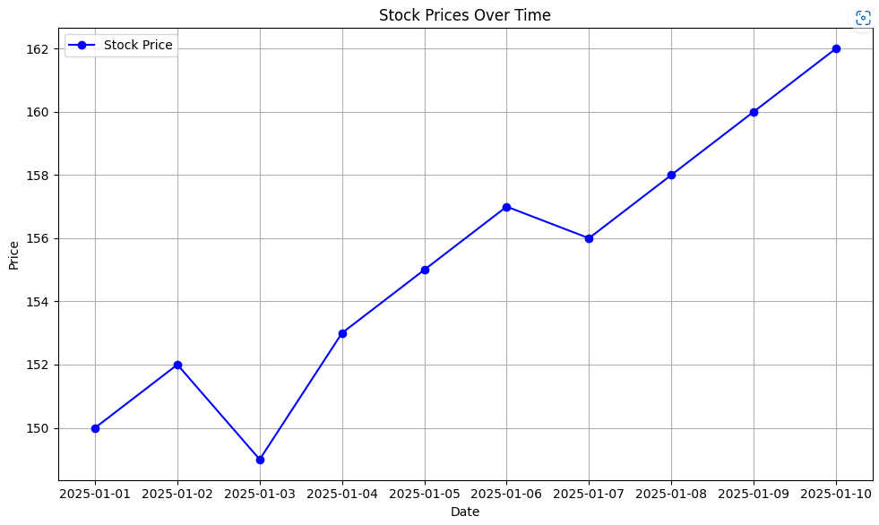 Imagine you want to visualise stock prices over time, a line chart can perfectly show this.